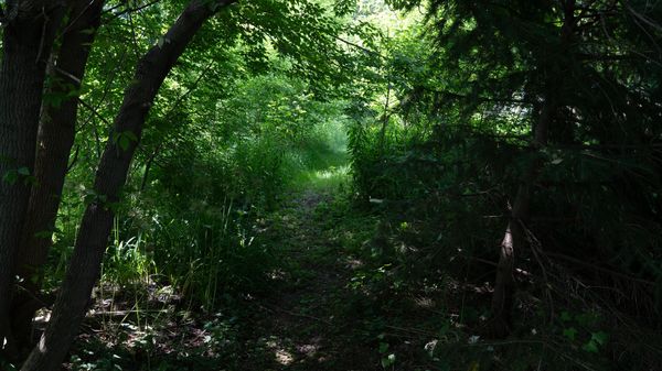 There is a spot at the end of our trail for sitting and one for standing to fish. This is our Fishing Hole. There are tall Silver Maple trees for shade. We have planted native vegetables for bank stabilization and visual enjoyment. There are red dogwood, ostrich ferns, service berry, aster, nanny berry, maiden hair fern, elderberry and others. Returning on the same grassy trail takes you back to the Mill. There are White Pine, Cedar, Manitoba Maple, buttercups and some large Black Walnut trees.